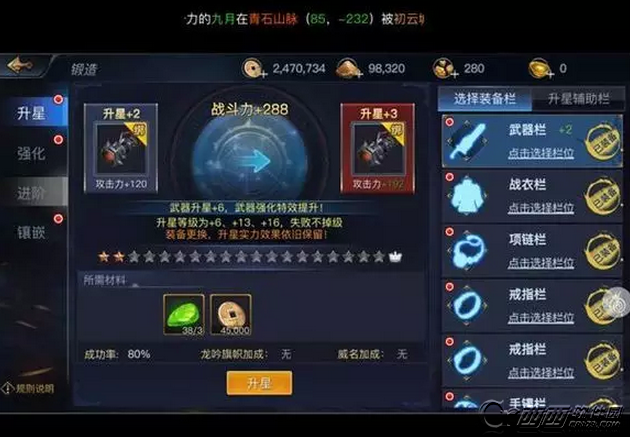 然后就是说说人物培养好了,提高战力无外乎从这么几个方面,装备、武学、宠物、称号。平常的时候,要准时去提高装备阶位,强化装备,镶嵌宝石,有钱了就去强化,然后用藏宝图去搞高阶装备。