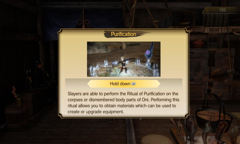 屠魔者有能力在鬼的尸体旁或断肢旁施展净化魔法阵。发动这个魔法阵可以叫你获得可以进行制造装备或升级装备的材料。